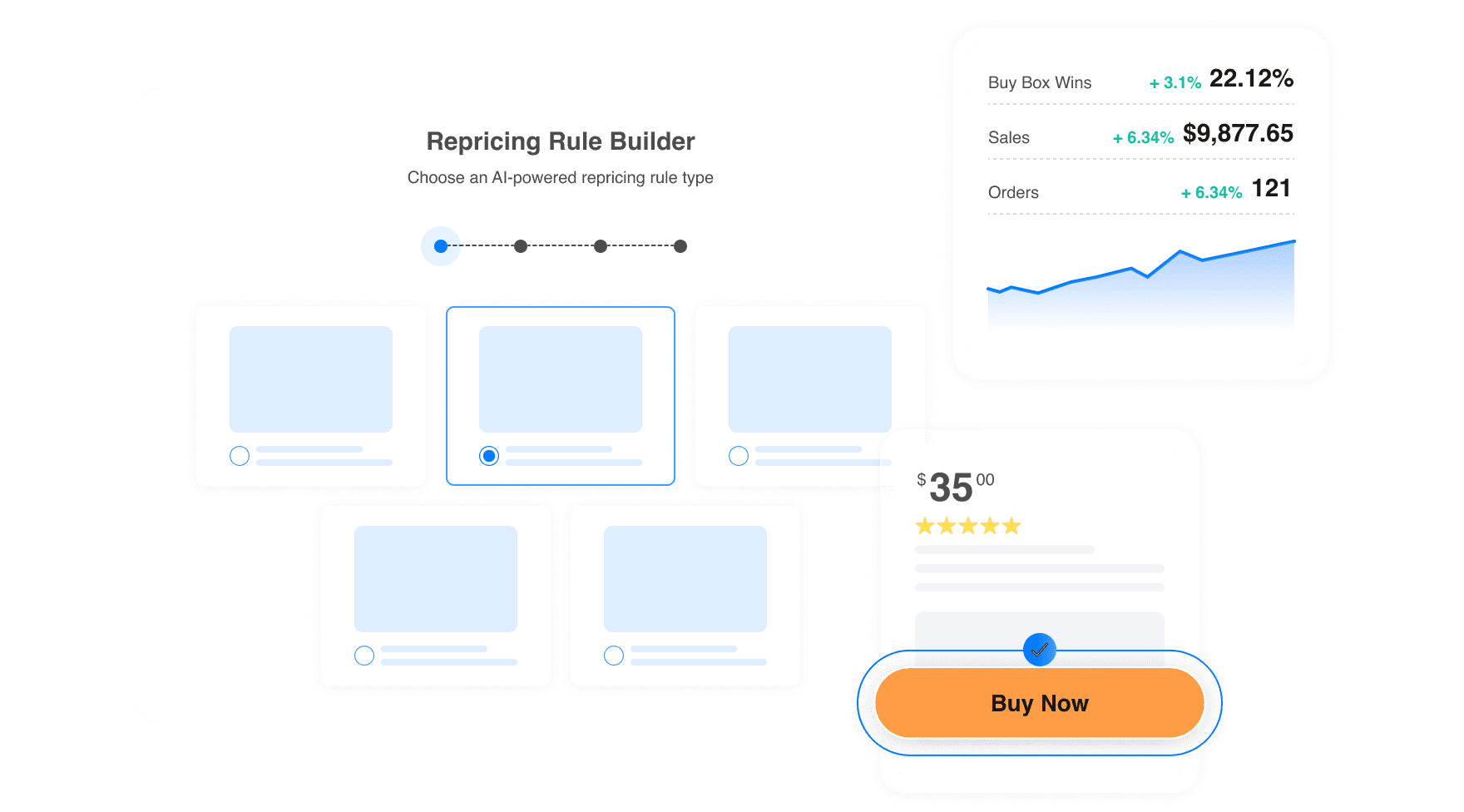AI incrementally reprices to win the Buy Box and maximize profit.